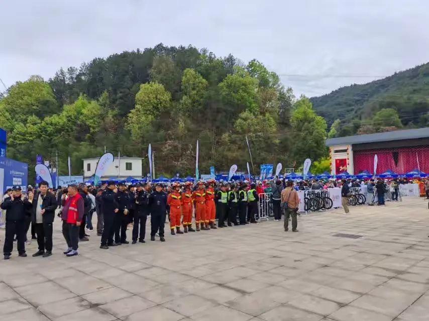赛事期间,永安保安调配了大量身着反光背心的安保人员,在赛场各处进行站岗和巡逻。他们分布在起点、终点、赛道沿线及观众区域,负责引导人流、维护秩序,确保赛事参与者和观众的安全。